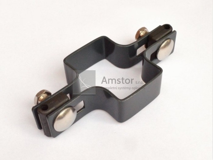 Objímka o průměru 40x60 mm. Povrchová úprava zinek Zn+PVC. Barva antracitová RAL 7016. Součástí objímky je 2x šroub, plastový vymezovač, podložka a matka.