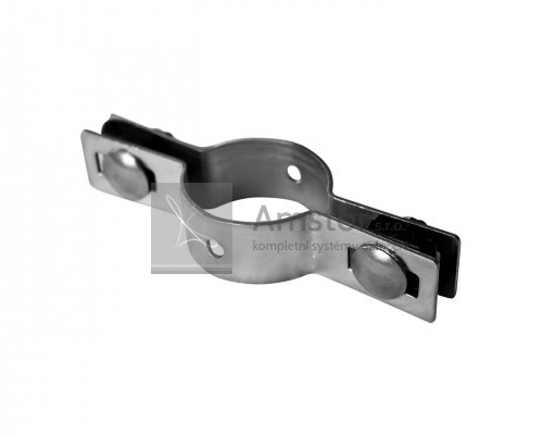 Objímka o průměru 48 mm. Povrchová úprava zinek Zn. Součástí objímky je 2x šroub, plastový vymezovač, podložka a matka.