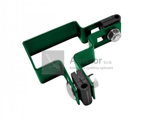 Objímka o průměru 40x60 mm. Povrchová úprava zinek Zn+PVC. Barva zelená RAL 6005. Součástí objímky je 2x šroub, plastový vymezovač, podložka a matka.