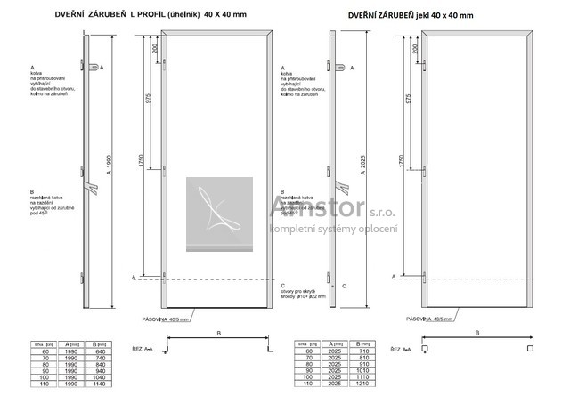 Dveřní zárubeň z profilů L 40/40 nebo jeklu 40/40 mm. Povrchová úprava základní šedý nástřik. Provedení levá nebo pravá.