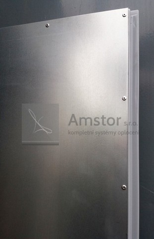 Dveře jsou vyrobeny z uzavřeného dveřního profilu - tvaru L a jednostranně zaplechovány plechem o síle 1mm, provedení levé nebo pravé. Dveře mají zámek pro vložku FAB a plastové kování. Pohledová strana dveří je ze strany pantů, otvírání k sobě !! Zateplení je provedeno minerální izolací tloušťky 40mm. Izolace je zajištěna pozinkovaným plechem, který je nanýtován na rám dveří. Dveře je možno vyrobit také s větracími mřížkami. Možnost výroby zárubně z jeklu 40/40 mm.