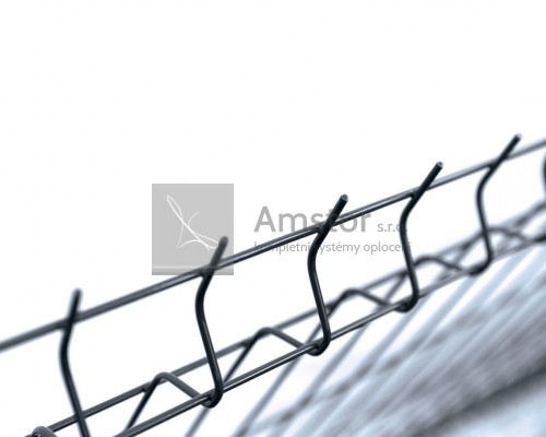 Průmyslový panel výška 830 mm, šířka 2500 mm. Povrchová úprava Zn+PVC. Barva: antracit RAL 7016. Síla drátu 4,0 mm (horizontální), 4,0 mm (vertikální). OKO 50 x 200 mm.