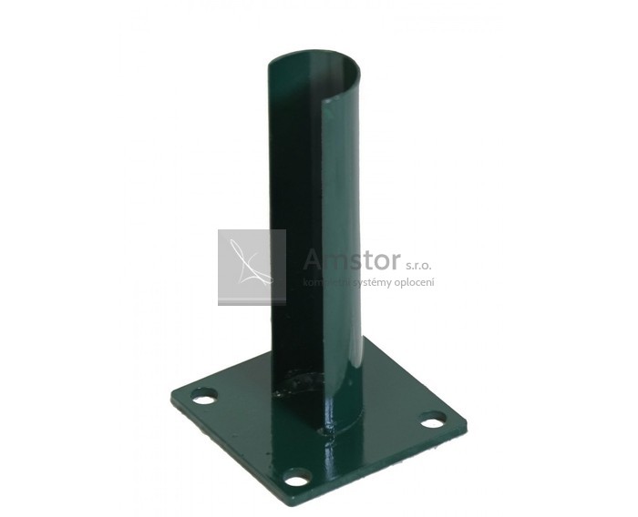 Základová patka pro sloupek o průměru 48 mm. Barva zelená RAL 6005. Povrchová úprava Zn + PVC.