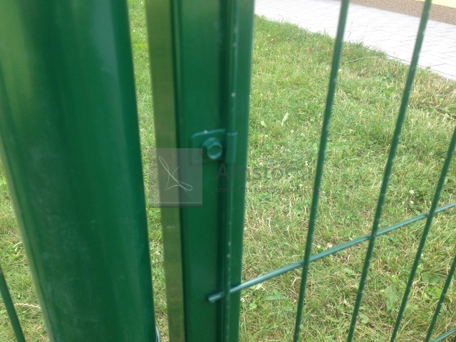Příchytka průmyslového panelu k bráně. Povrchová úprava Zn+PVC. Barva zelená RAL 6005.
