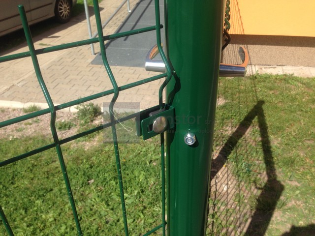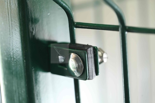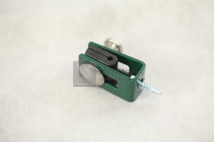Příchytka průmyslového panelu. Povrchová úprava Zn+PVC. Barva zelená RAL 6005.
