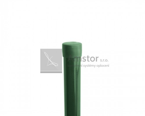 Plotový sloupek Zn+PVC, průměr 48 mm. Barva zelená RAL 6005. Síla stěny 1,5 mm. Součástí sloupku je čepice z PVC.